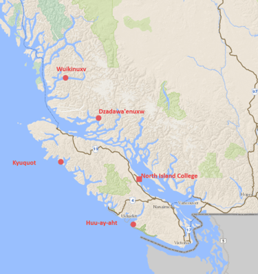 In 2019 we expanded the field schools through a research grant from the College Community Social Innovation Fund, in a project called Raising student nurses. We expanded our partnerships to include the Ka:'yu:'k't'h'/Che:k:tles7et'h’, FN and the Huu-ay-aht FN and we took first year students into the community. For more information see here ( Link to CARTI Raising Student Nurses Page)