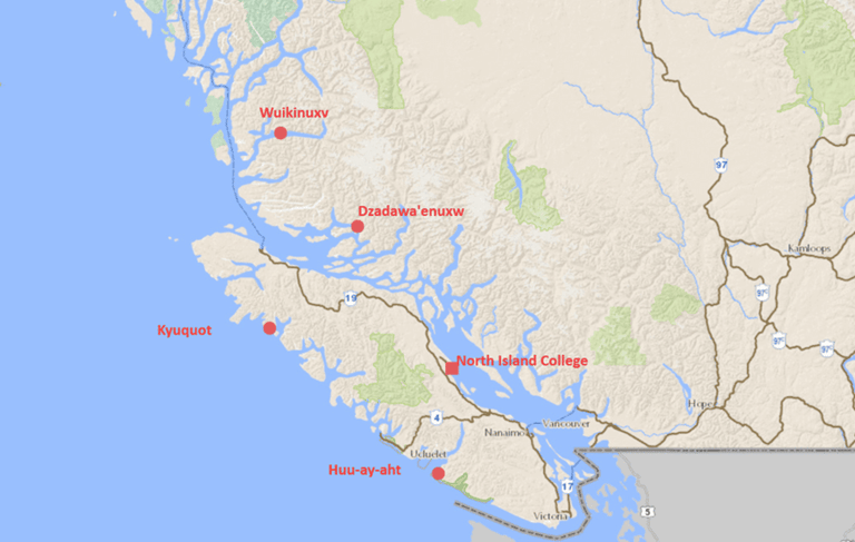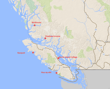 This collaborative initiative involves partnerships between Wuikinuxv, Kwakiutl, Ka:'yu:'k't'h'/Che:k:tles7et'h', and Dzawada’enuxw First Nations, alongside North Island College.
